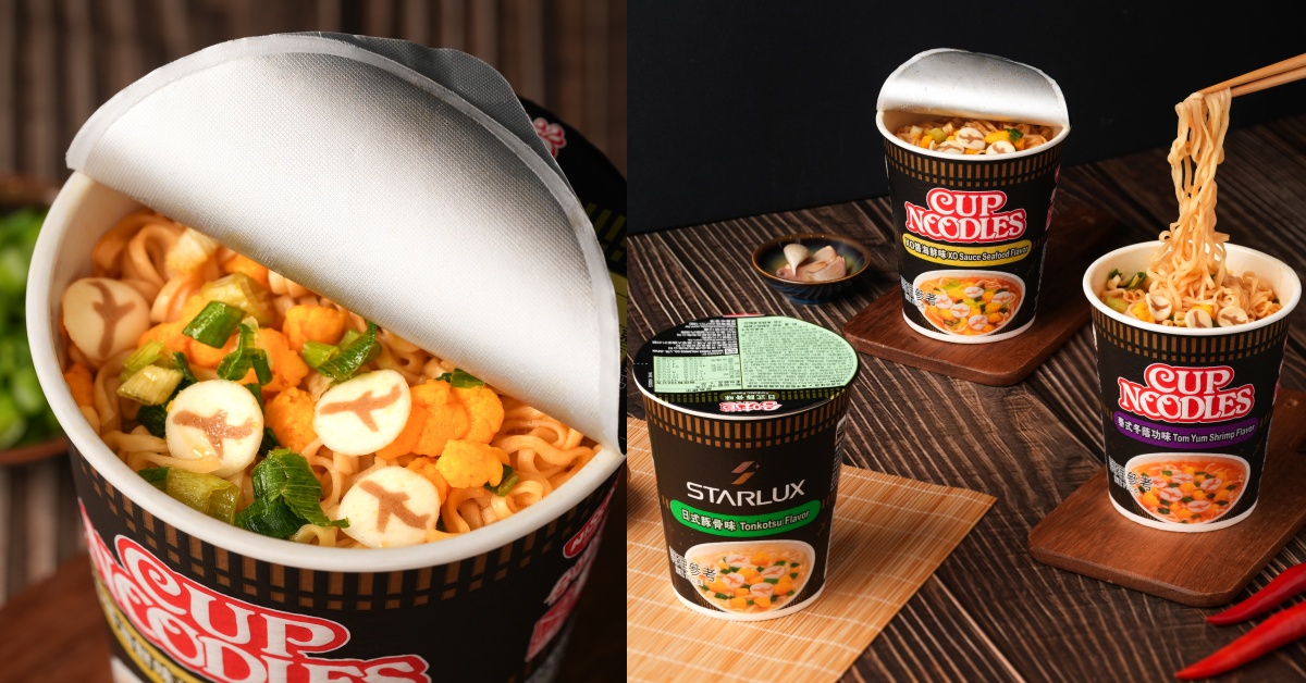 此次星宇航空 x 日清食品聯名杯麵最大亮點,為量身打造三款不同的聯名杯身,日清食品更特別為星宇航空研發「飛機造型魚板」,每一杯杯麵中皆藏有數片微型飛機魚板,隨熱水沖泡後浮出,為聯名杯麵增添了許多獨特與趣味性。無論是作為療癒消夜或是居家備糧,都能在三分鐘內開啟一段味蕾之旅。