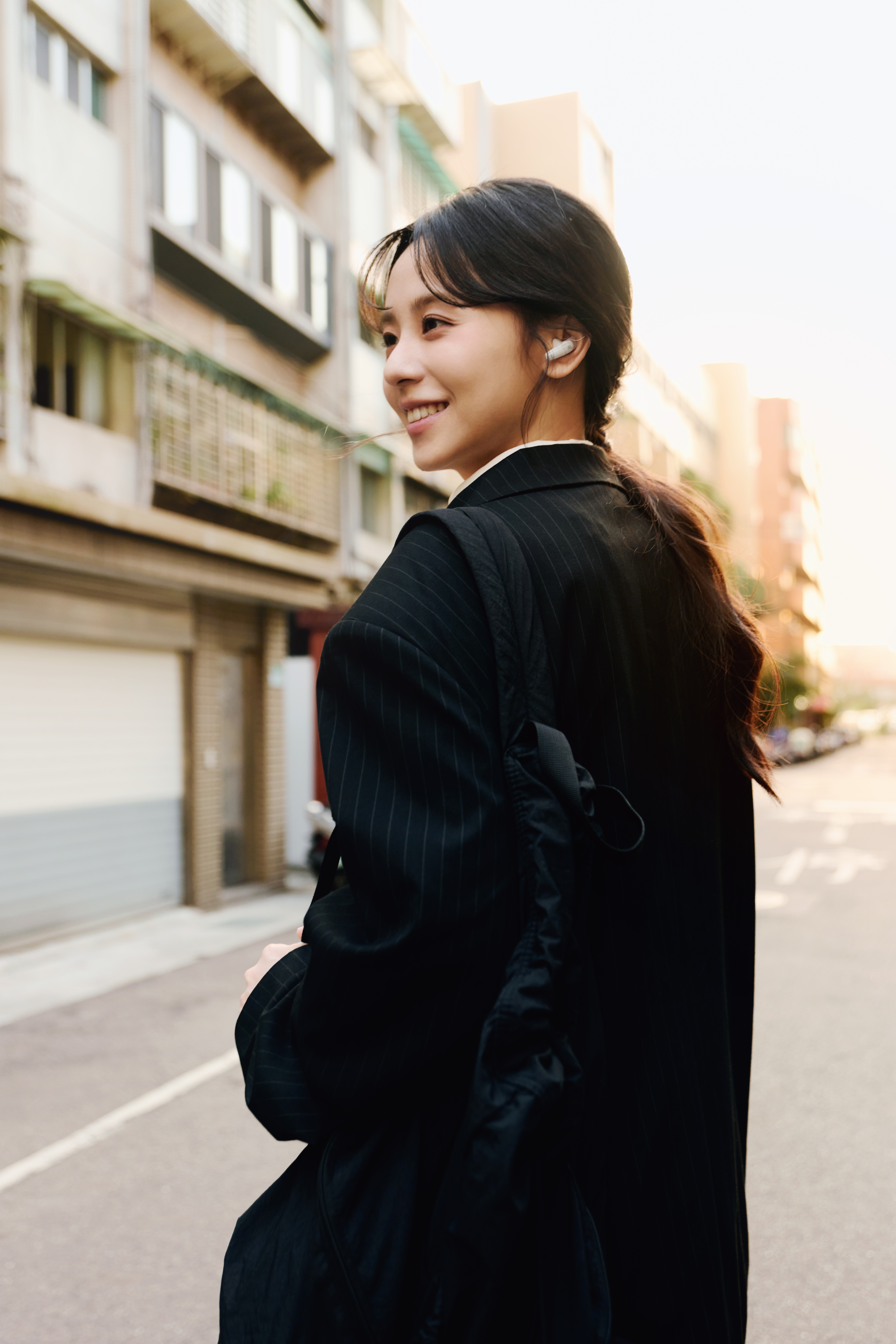 如果透過買 Liberty Buds 附贈的「NFC 鑰匙圈」能傳遞一種心情,163braces 挑選了 haruka nakamura 的《Arne》 送給讀者,這首歌最能代表她當天拍攝的穿搭心情,很適合黃昏、工作後的散步,是一個很留給自我的時間。不管是用 Liberty Buds 徹底登出世界的噪音,或是帶著 C50i 在日常中漫慢晃晃,希望每個人都能在耳機裡,找到最讓自己舒服的那個頻率。