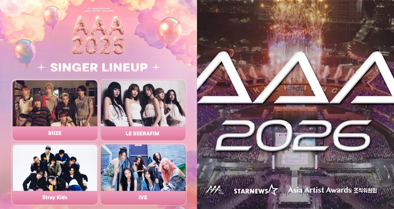 回顧 2025 年,AAA 為慶祝 10 週年首度移師台灣,於 12 月 6 日、7 日在高雄舉行,吸引超過 5 萬人到場。卡司更是星光熠熠,包括女星 IU、朴寶劍、佐藤健,以及 Stray Kids、IVE、RIIZE、LE SSERAFIM 等人氣團體齊聚。 AAA 特色在於同時頒發歌手與演員獎項,規模相當龐大,加上場館可容納約 5 萬名觀眾、還具備戶外煙火施放條件,整體氣氛相當好,也讓不少人津津樂道。