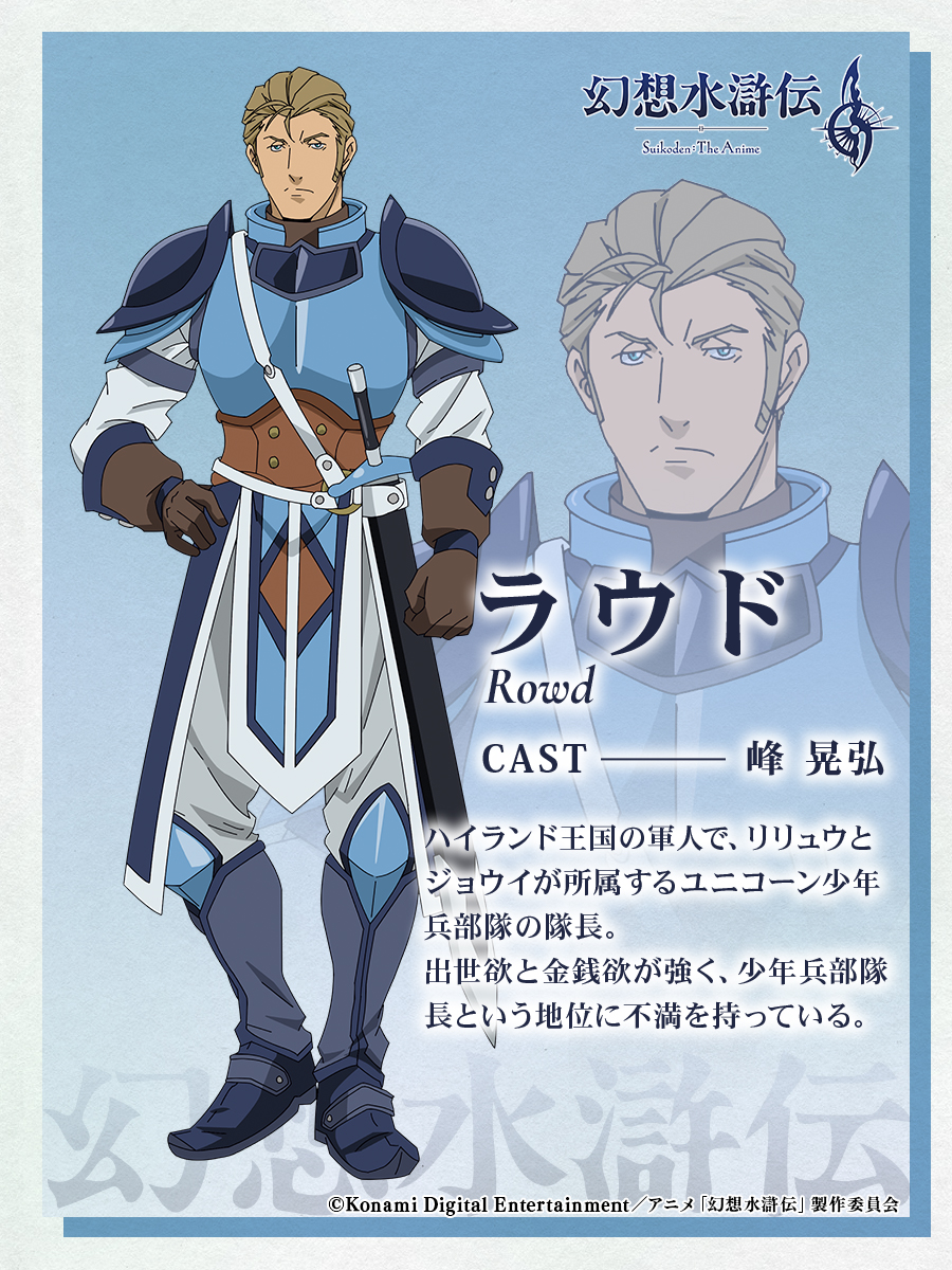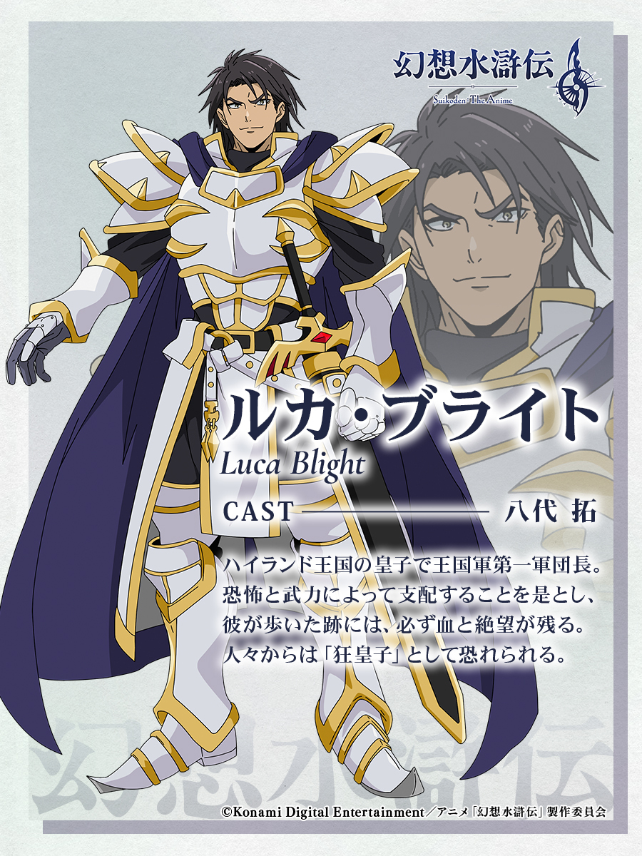 由 KONAMI 推出的根據中國四大奇書《水滸傳》改編的 RPG 遊戲《幻想水滸傳 II》 在先前正式宣佈將文藝復興推出動畫的消息。而官方在 5 日公開了《幻想水滸傳》動畫的首部 PV 以及角色相關的聲優資訊,並確認動畫將於 10 月開播的消息!