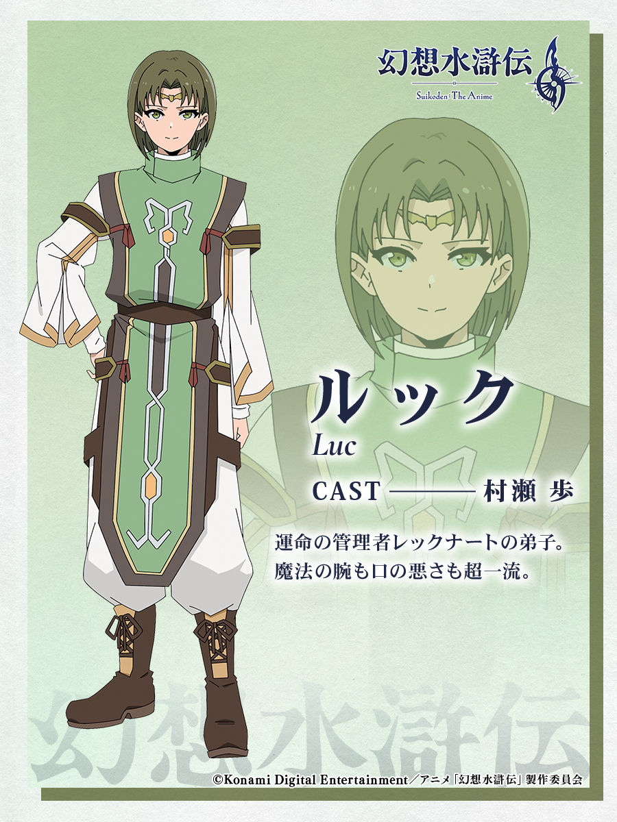 由 KONAMI 於 1998 年基於中國四大奇書《水滸傳》改編的經典角色扮演遊戲在先前宣布將推出改編動畫的消息。故事發生在前作《幻想水滸傳》三年後,將故事舞台移至赤月帝國北方的裘斯頓都市同盟,講述兩個擁有「始之紋章」的男孩由朋友變成敵人的宿命對決故事。5 日《幻想水滸傳》公開了動畫首部 PV,並確認將於 10 月開播的消息,也同步公開了動畫角色們的聲優配音陣容。