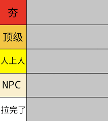 意思:分別對應 5 個等級,能夠形容一切事物。「NPC」泛指無個性、容易被忽略的人或事。