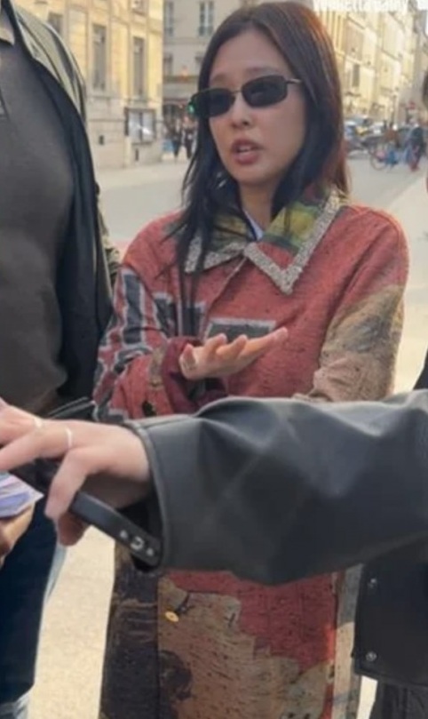 根據知名外媒 allkpop 以及社群平台 Threads 曝光的影片可以看見,Jennie 身穿古典氣息滿載的外套搭配墨鏡漫步於巴黎街頭,而正愜意之時,突然一群黃牛和粉絲蜂擁而上不斷向前遞小卡索要親筆簽名,讓 Jennie 皺眉地向在場的人表示:「可以給我一個屬於我的一天嗎?」接著繼續說:「我會幫你們簽名,不要再拍我了,這讓我壓力非常大。」身旁的友人也向大家詢問:「如果我們簽了名,你們能讓我們走嗎?」懇求現場的人給予一些私人空間。