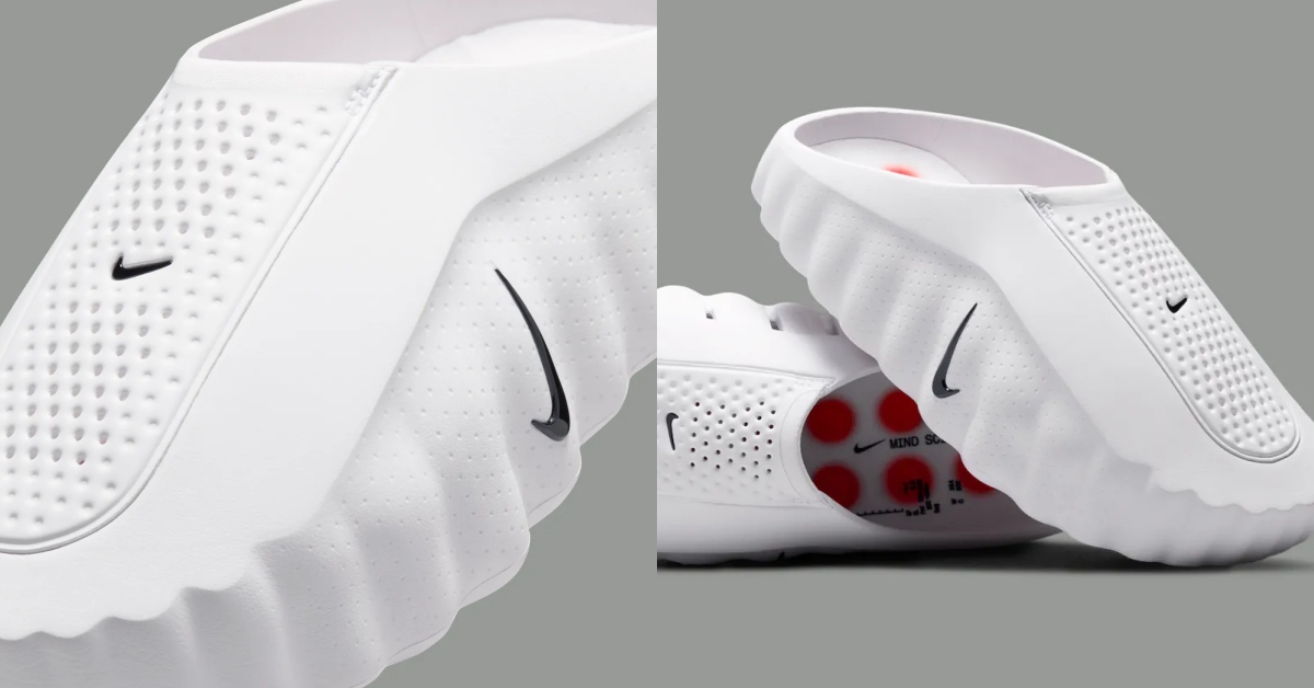 本次曝光的 白紅配色 以簡潔俐落的白色鞋身為主軸,搭配鮮明紅色泡棉,展現簡潔俐落的視覺感,突顯 Mind 001 標誌性的立體結構。整體設計在保持未來感輪廓的同時,也透過運動風格的配色讓鞋款更具活力與辨識度,使這雙「運動拖鞋」在機能與造型之間取得新的平衡。