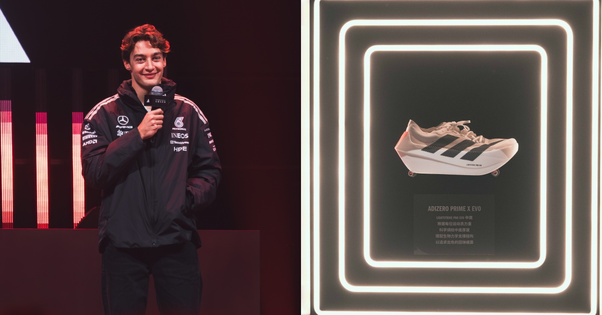 適逢 F1 上海站登場,冠軍賽車手 George Russell 也驚喜現身活動現場。他駕駛專屬車輛在模擬賽道中甩尾進場,隨後與滑雪運動員 蘇翊鳴 同台交流,還用中文喊出「我愛你們」與現場粉絲熱情互動。活動現場同時展示了 George Russell 的賽車服與專屬裝備,透過「速度」、「音樂」、「心跳」等象徵 F1 與跑道精神相對應的元素,貫徹 ADIZERO EVO SL 的活動元素。