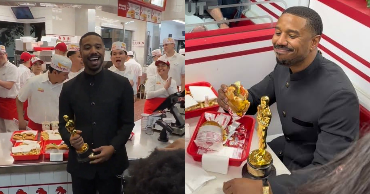 如果你剛拿下奧斯卡小金人,那你會怎麼慶祝?是去吃高檔餐廳嗎?麥可·B·喬丹(Michael B. Jordan)選擇直接衝去吃 In-N-Out。憑藉著《罪人》奪下奧斯卡最佳男主角的新科影帝,西裝都還沒換,就現身美國知名速食品牌 In-N-Out Burger,手上還緊緊拿著奧斯卡獎座,一邊接受店員歡呼、一邊大啃漢堡,顯示出他平易近人的一面。