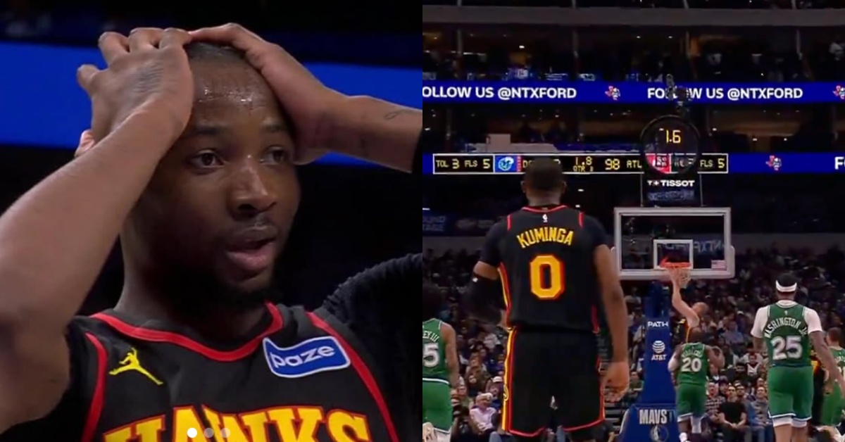 NBA 亞特蘭大老鷹隊近期勢如破竹,在今日交手達拉斯獨行俠的比賽中,不僅全隊 7 人得分上雙,終場以 135:120 擊敗達拉斯獨行俠,球隊還取得 11 連勝,爬到東區第八的位置,極有機會能追到第六的魔術。而才剛從勇士轉隊破冰的 Jonathan Kuminga,本場比賽更有一記精彩好球,印證最近老鷹的火熱狀況,原先想後場長傳,結果卻被成一顆不可思議的三分球,不過他本人卻馬上抱頭顯得十分懊惱的樣子,讓網友笑稱:「是不是被 Kerr 罵的陰影發作了 XD。」