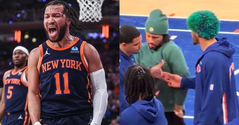 這已不是 Brunson 第一次在場邊遭到隊友「騷擾」。先前他曾被好友 Josh Hart 在大庭廣眾下「戳屁股」,如今又被索漢突襲胸部。