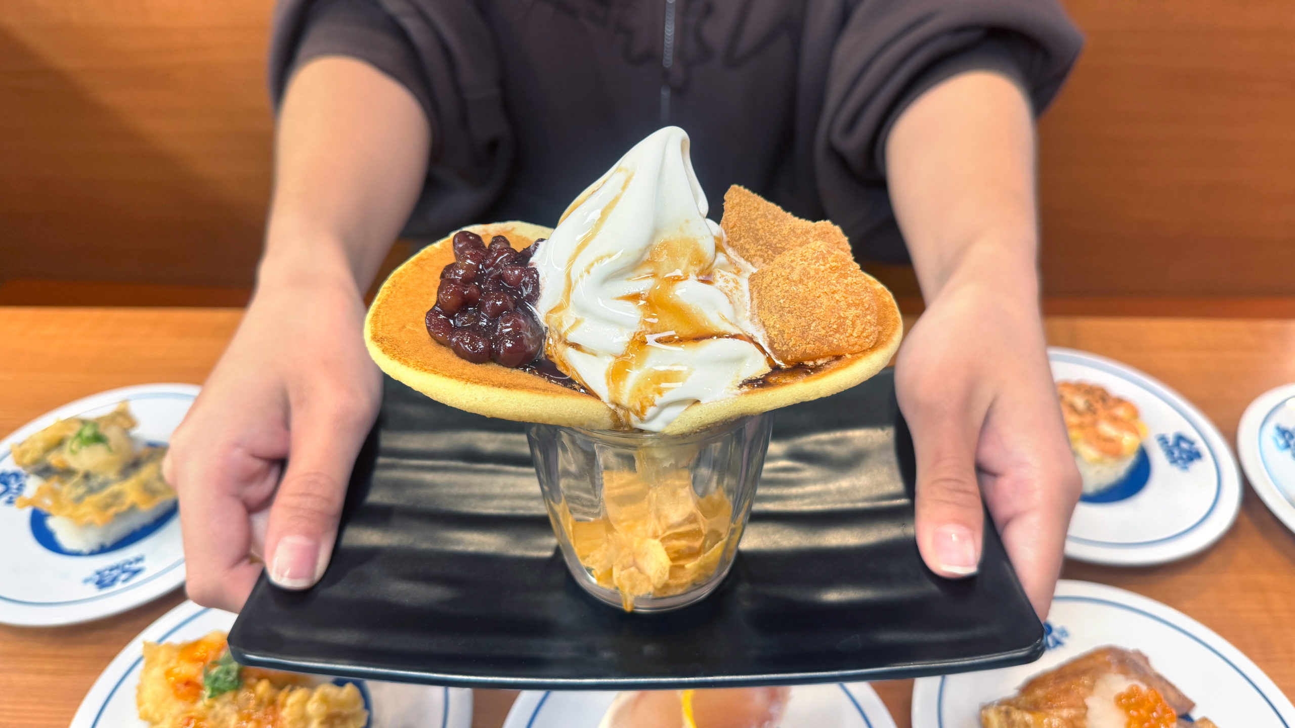餐後甜點也同樣不能錯過,這次推出的超吸睛新品「銅鑼燒霜淇淋聖代」將經典日式甜點變化出花瓣造型的聖代,結合牛奶霜淇淋、蕨餅與紅豆泥,打造視覺與味覺兼具的美味饗宴。