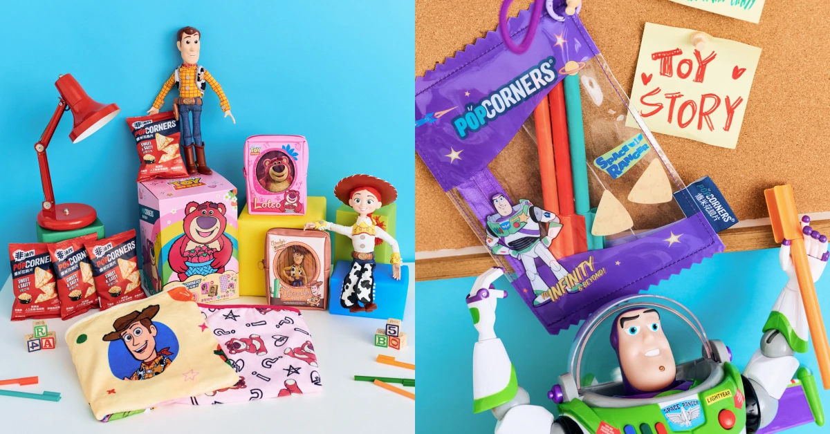 以非基因改造玉米、非油炸製作的 POPCORNERS 爆米花脆片,主打無添加人工色素與人工防腐劑,在滿足嘴饞享受的同時也降低負擔。這次與《玩具總動員》聯手推出「玩具盒造型收納包」與「零食造型收納包」兩大系列周邊。