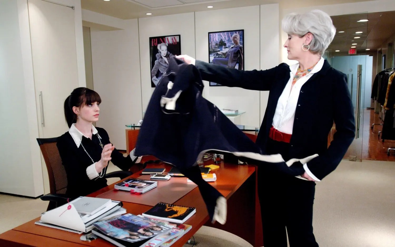 人氣電影《穿著 Prada 的惡魔》(The Devil Wears Prada)以剛畢業、滿懷抱負的年輕女孩「安德莉亞 / 小安」(安海瑟薇 飾)應徵為《伸展台》雜誌主編「米蘭達」(梅莉史翠普 飾)初級私人助理作為開端,描繪出社會新鮮人在高壓職場中的成長與掙扎。