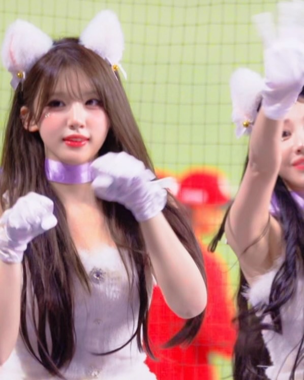 職棒樂天桃猿 3 月 28 日至 29 日在台北大巨蛋展開「做伙」開幕戰,全員在 5 局中場休息時間換裝時,旗下啦啦隊「樂天女孩」(Rakuten Girls)化身為喵喵獻跳「貓咪舞」,她們身穿純白雪紡平口短裙搭配夢幻紫色領巾,頭戴蓬鬆柔軟的貓耳頭飾,雙手套著卡哇依貓掌手套,營造甜辣俏皮氛圍。