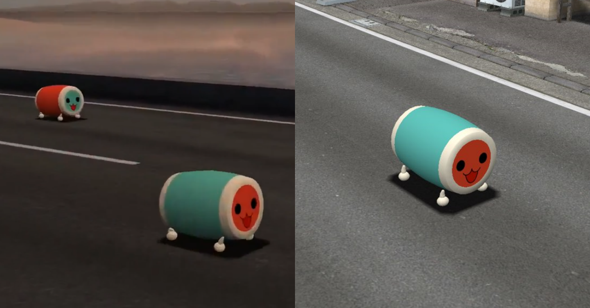 從官方釋出的畫面來看,熟悉的賽道、過彎與甩尾鏡頭依舊存在,但在路上狂飆的卻不再是任何一輛車,而是「小咚」與「小咔」。兩顆圓滾滾的太鼓,就這樣在山路上進行甩尾,甚至還能做出精準過彎與加速的動作。