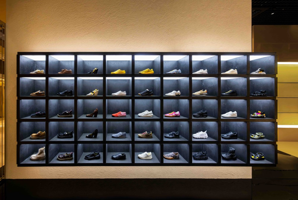 以品牌標誌性色彩「Tiger Yellow」為起點,全新Onitsuka Tiger微風南山概念店透過空間設計重新詮釋品牌語彙,於色彩、材質與結構之間建立鮮明而一致的視覺識別。全新Onitsuka Tiger微風南山概念店為目前全台規模最大的旗艦級門市,整體空間設計與東京銀座旗艦店及巴塞隆納全球概念店同步接軌,以石材紋理為主體,搭配金屬細節與俐落線條,透過材質對比與光影層次,形塑出兼具現代感與工藝質地的空間氛圍;此外,該店亦為全台首間引進米蘭時裝秀系列商品之專門店,完整呈現品牌高端時裝線,涵蓋男女服飾、鞋履及配件,將伸展台上的設計語彙延伸至日常穿搭場景,展現Onitsuka Tiger於當代時尚版圖中的多元面貌與創意能量。
