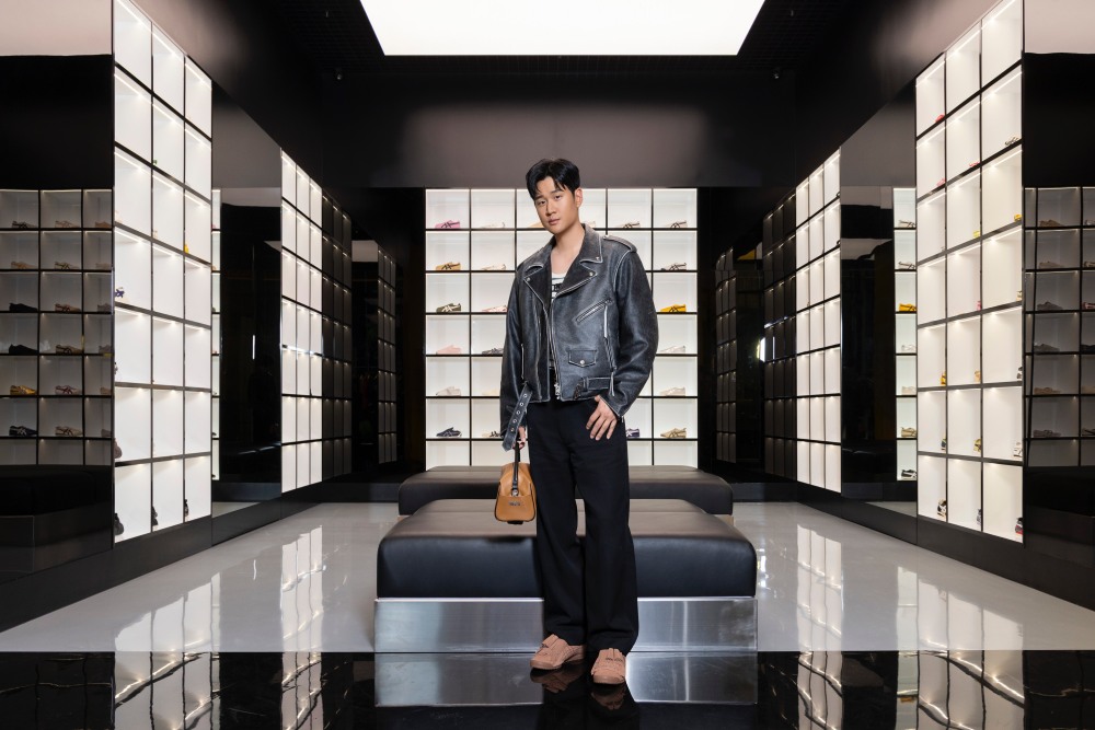 配件則搭配 KARATE 空手道造型肩背包,以細緻皮革與棕黑對比配色呈現俐落線條,並透過可手提、肩背與斜背的多元設計,兼具實用性與造型變化。整體搭配於低調色調中強調細節與工藝,從金屬配件到皮革紋理皆展現品牌對質感的講究,同時呼應本季「日常與非日常的平衡美學」,詮釋都市男性自信且內斂的時尚態度。