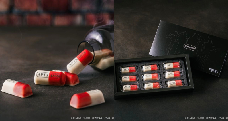 日本甜點電商 Cake.jp 與全球最長青 IP 之一《名偵探柯南》,推出以神秘藥丸「APTX4869」為靈感的造型巧克力,因由它們長久在動漫領域的深耕,此番作品也在網路上獲得相當有新意的評價。