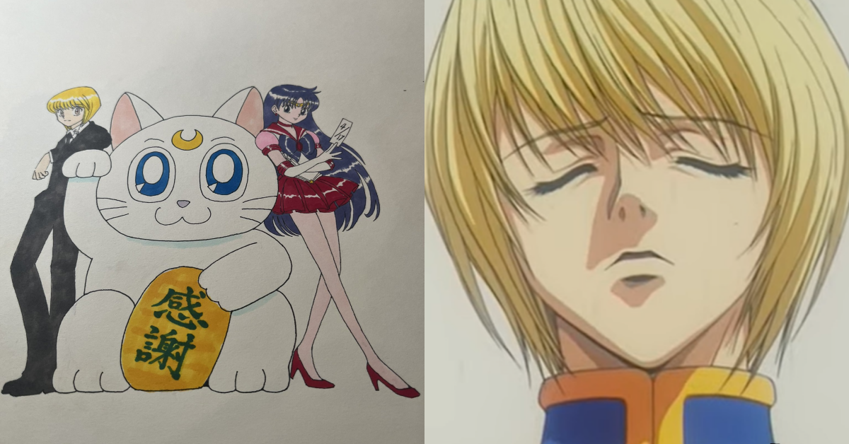 另外值得一提的是,冨樫老師在文中提到「從妻子那裡獲得了滿滿的力量」,眾所皆知,冨樫老師的老婆正是《美少女戰士》作者 武內直子。在老師親手繪製的這張插圖中酷拉皮卡旁邊的是「火野麗」,而他手上拿著一張寫著「4 / 17」的牌子。