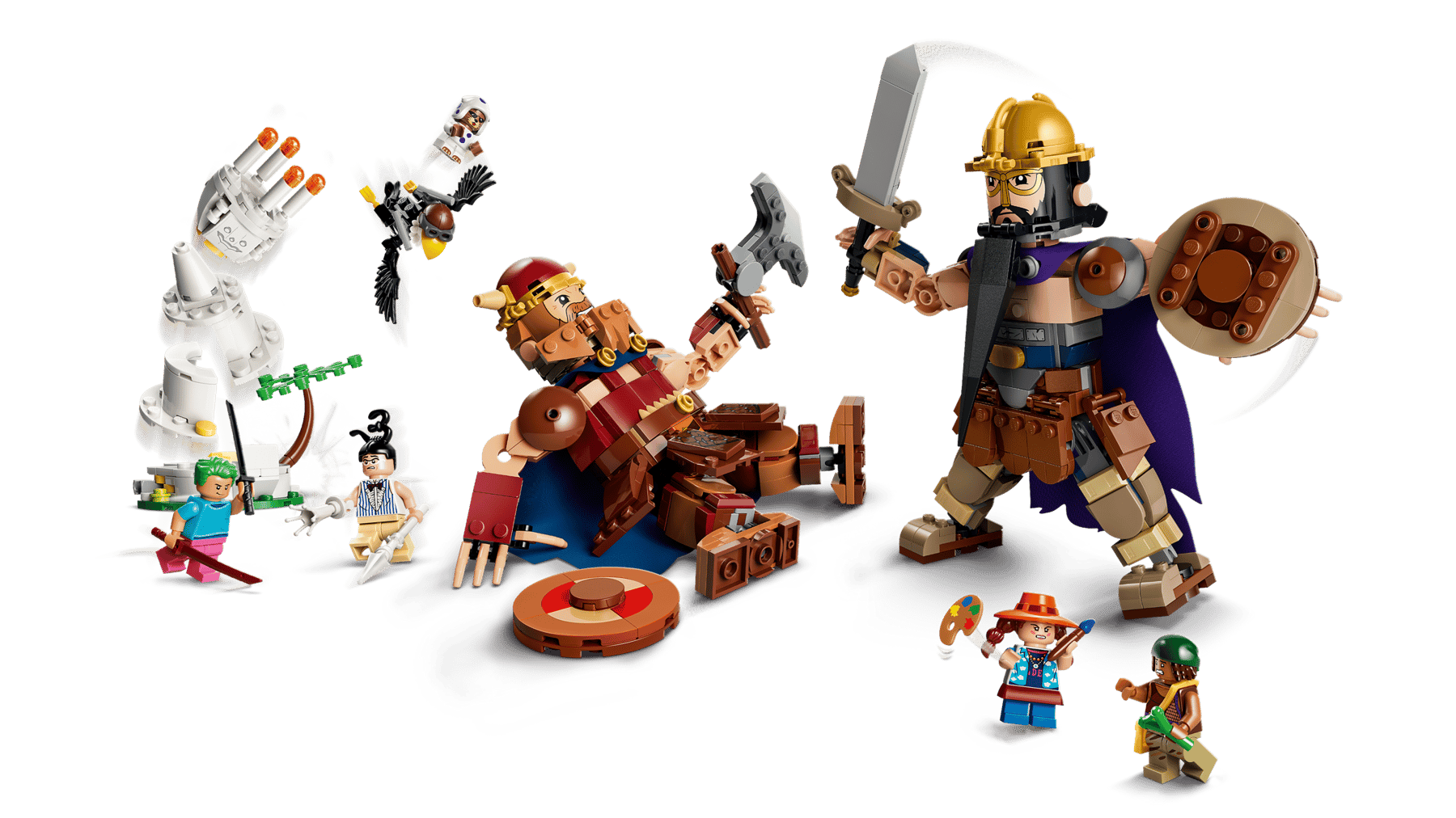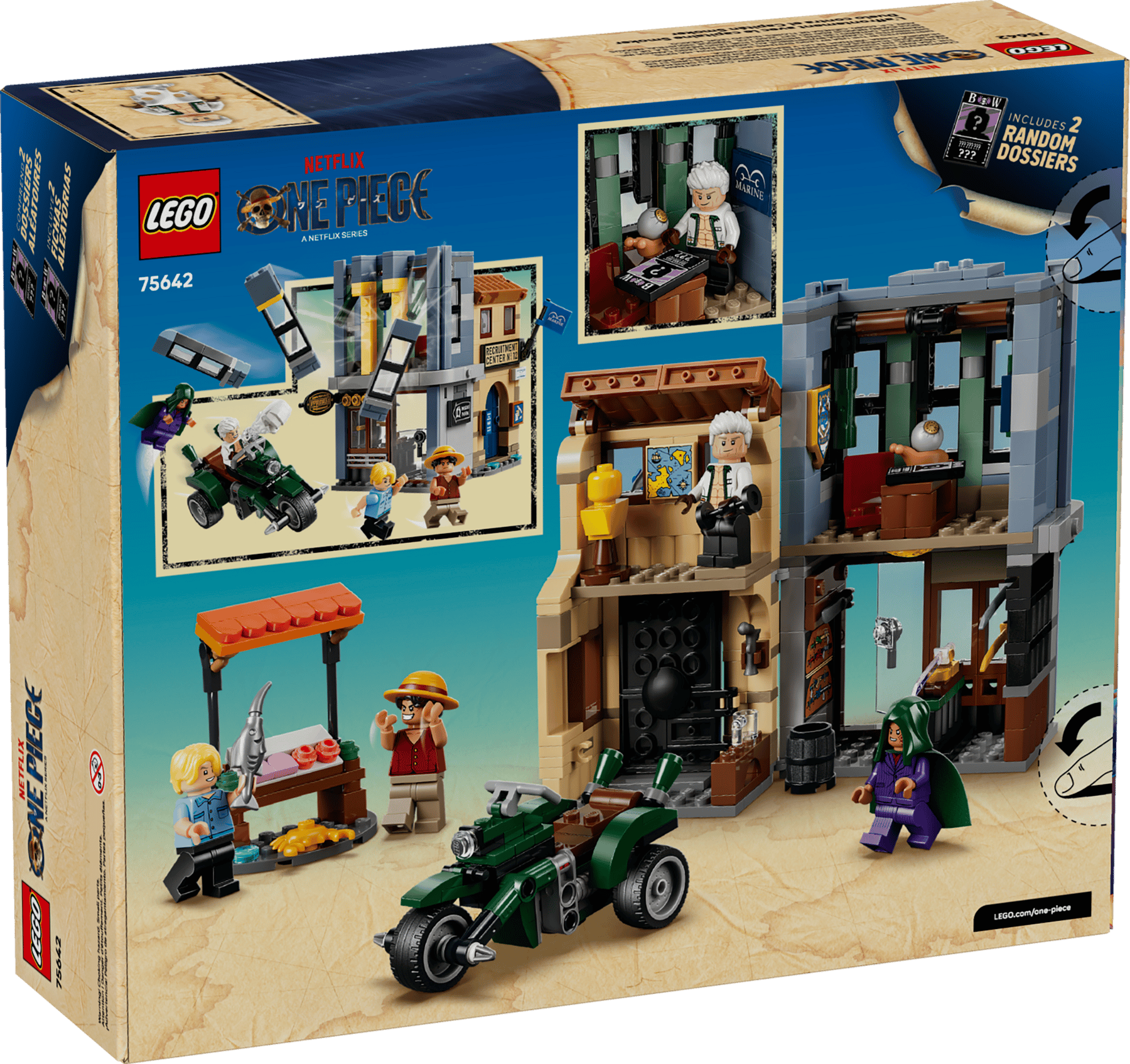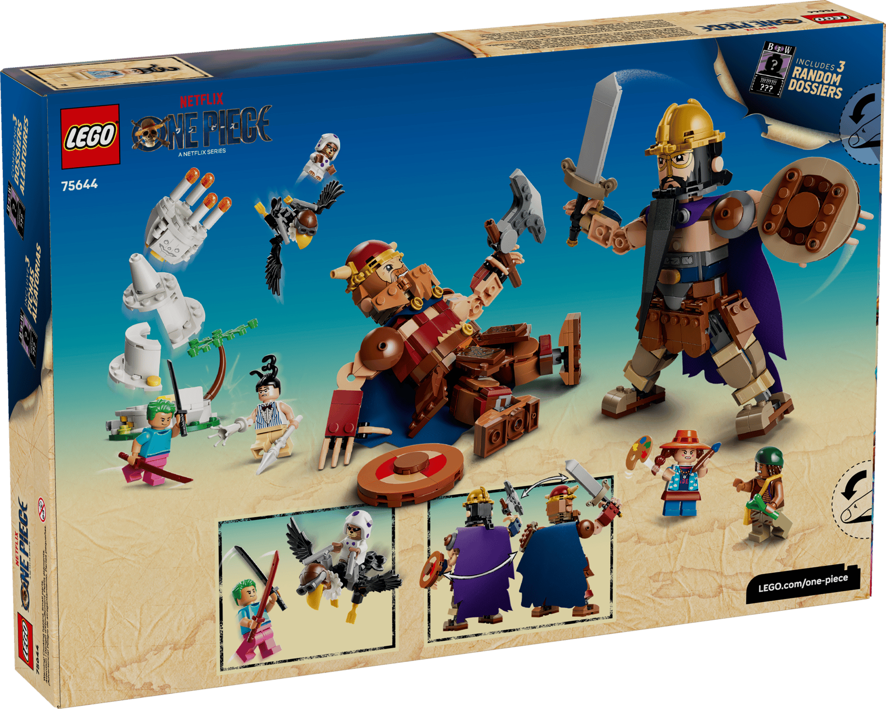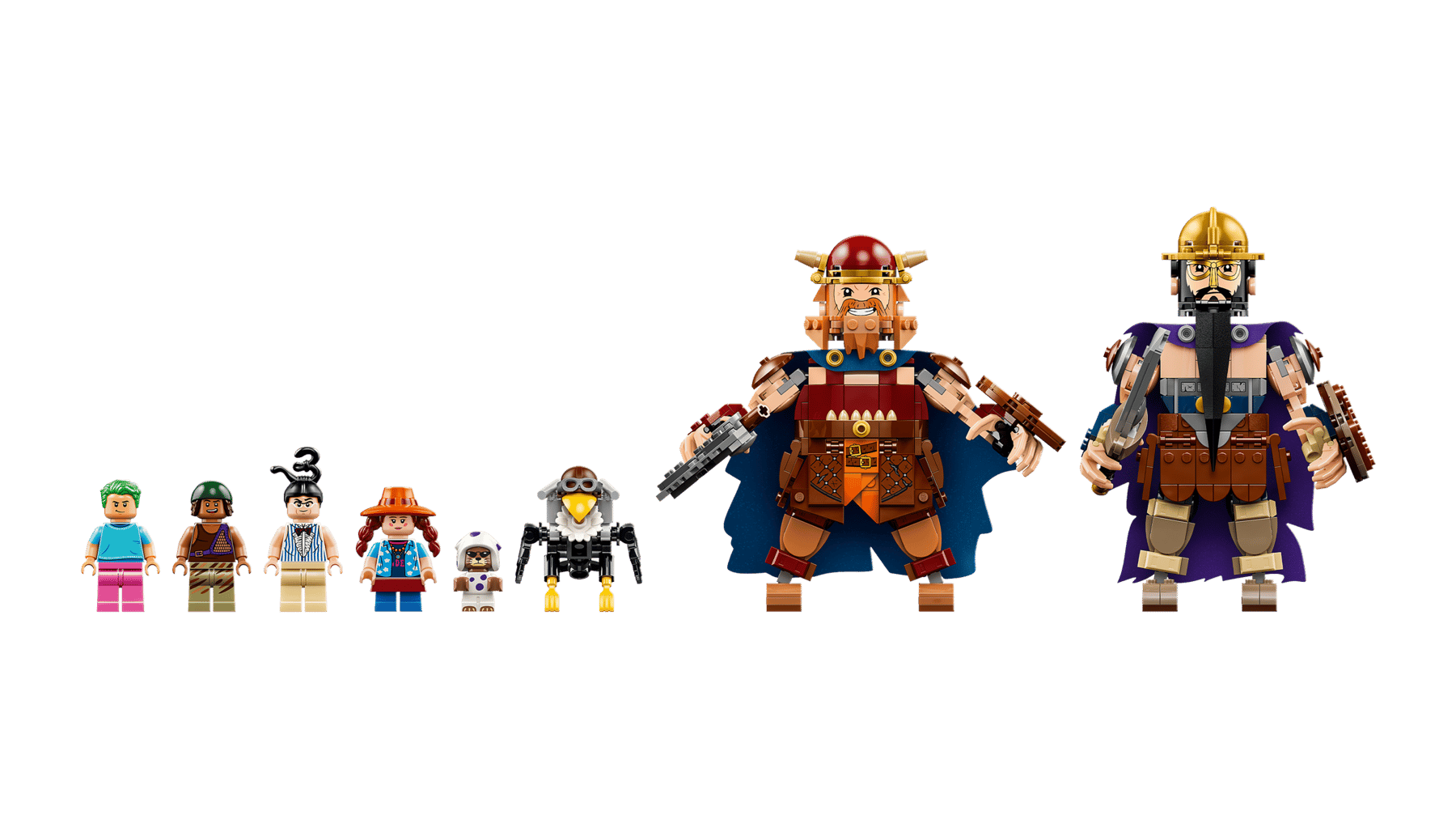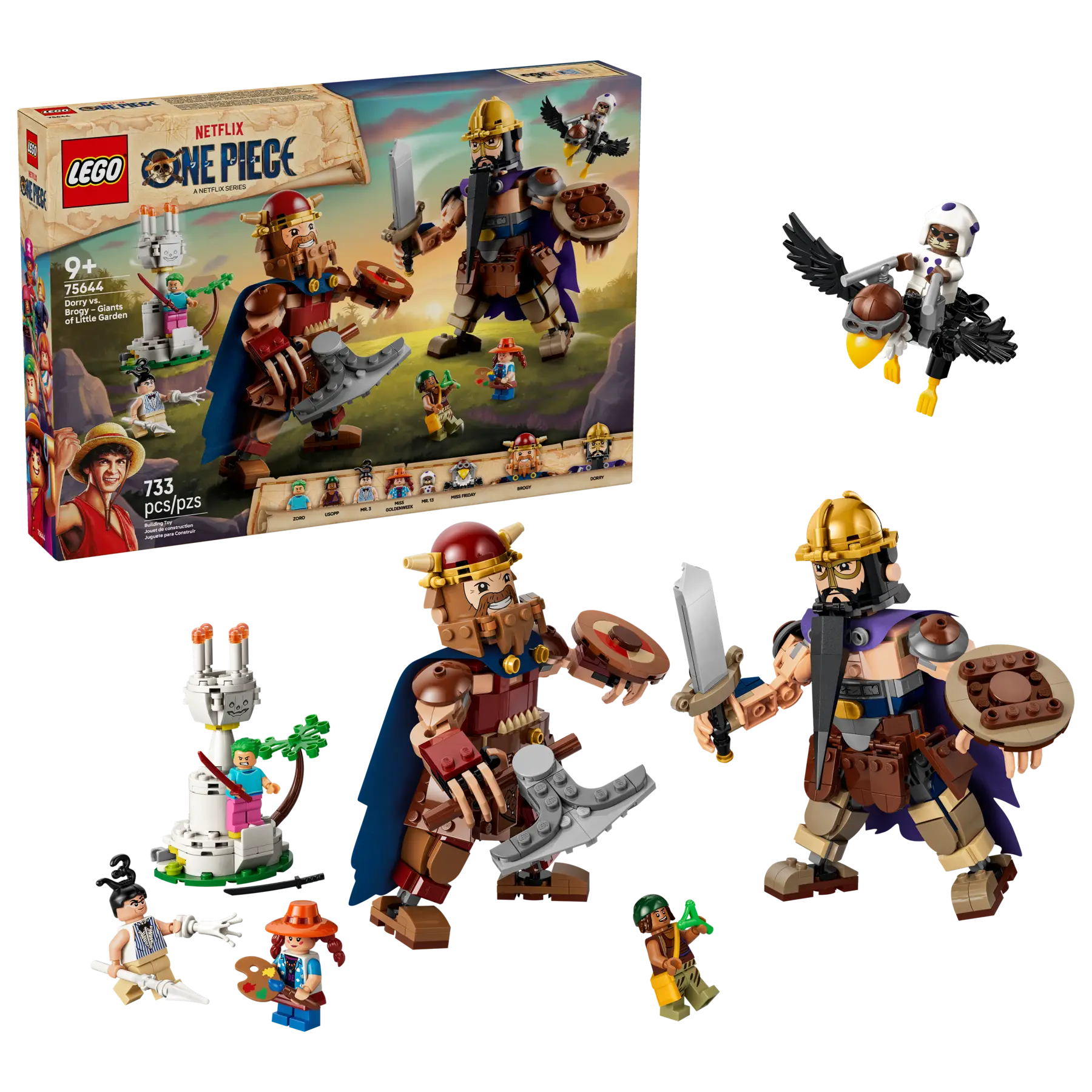 「小花園的巨人-多利與布洛基」以 733 片積木打造巨人族對決場面,兩位巨人具備可動設計,能重現戰鬥動作。套裝內含索隆、騙人布、Mr.3 以及 Miss 黃金周、不吉利二人組等樂高小人。