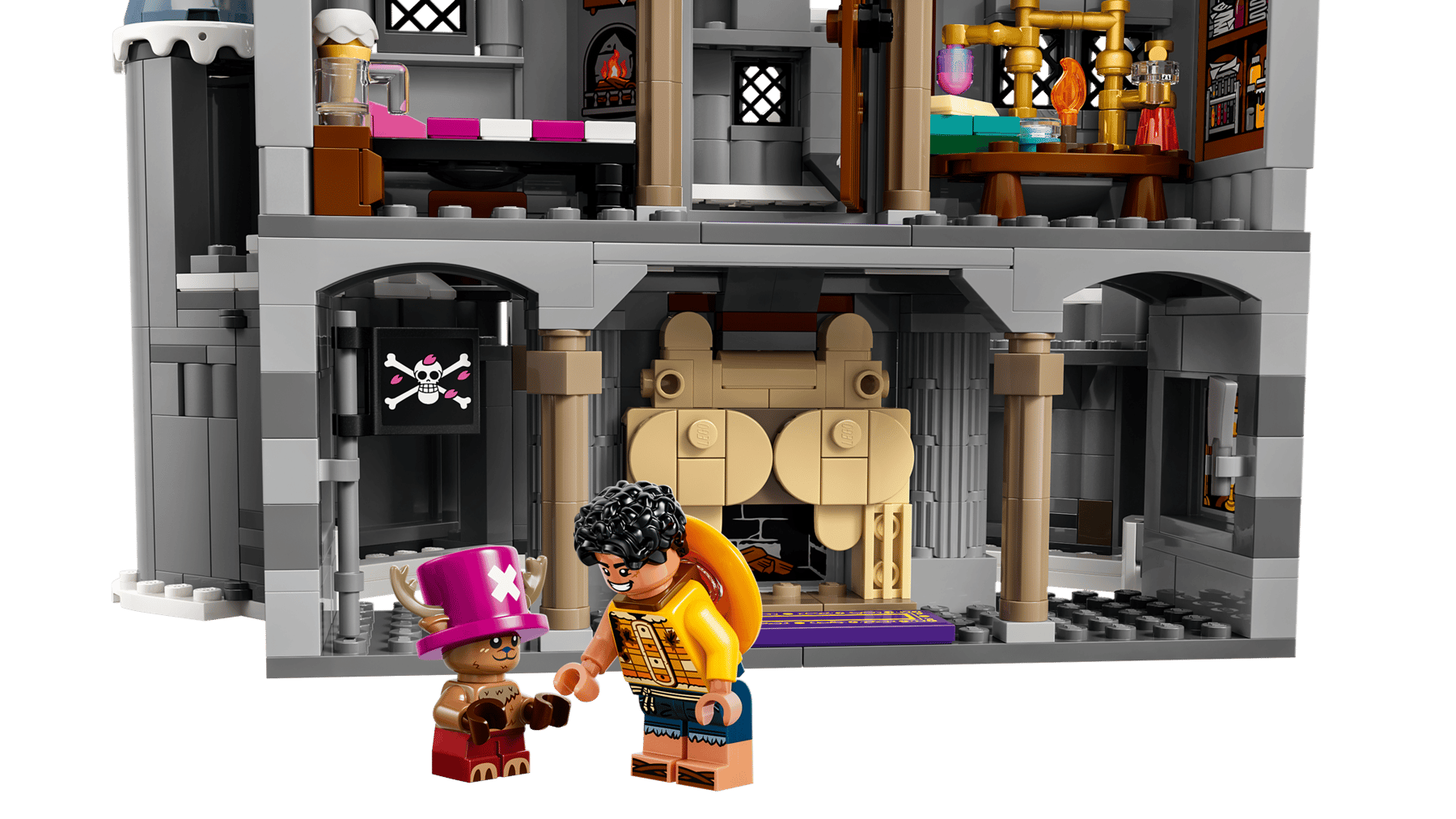 「磁鼓城之戰」還原了磁鼓島氣派的城堡,由 1,038 片積木大造。二樓是喬巴的實驗室、三樓則是王座聽,處處隱藏有趣的細節。套裝內含魯夫、娜美、香吉士、喬巴、薇薇和瓦波爾的樂高人偶。