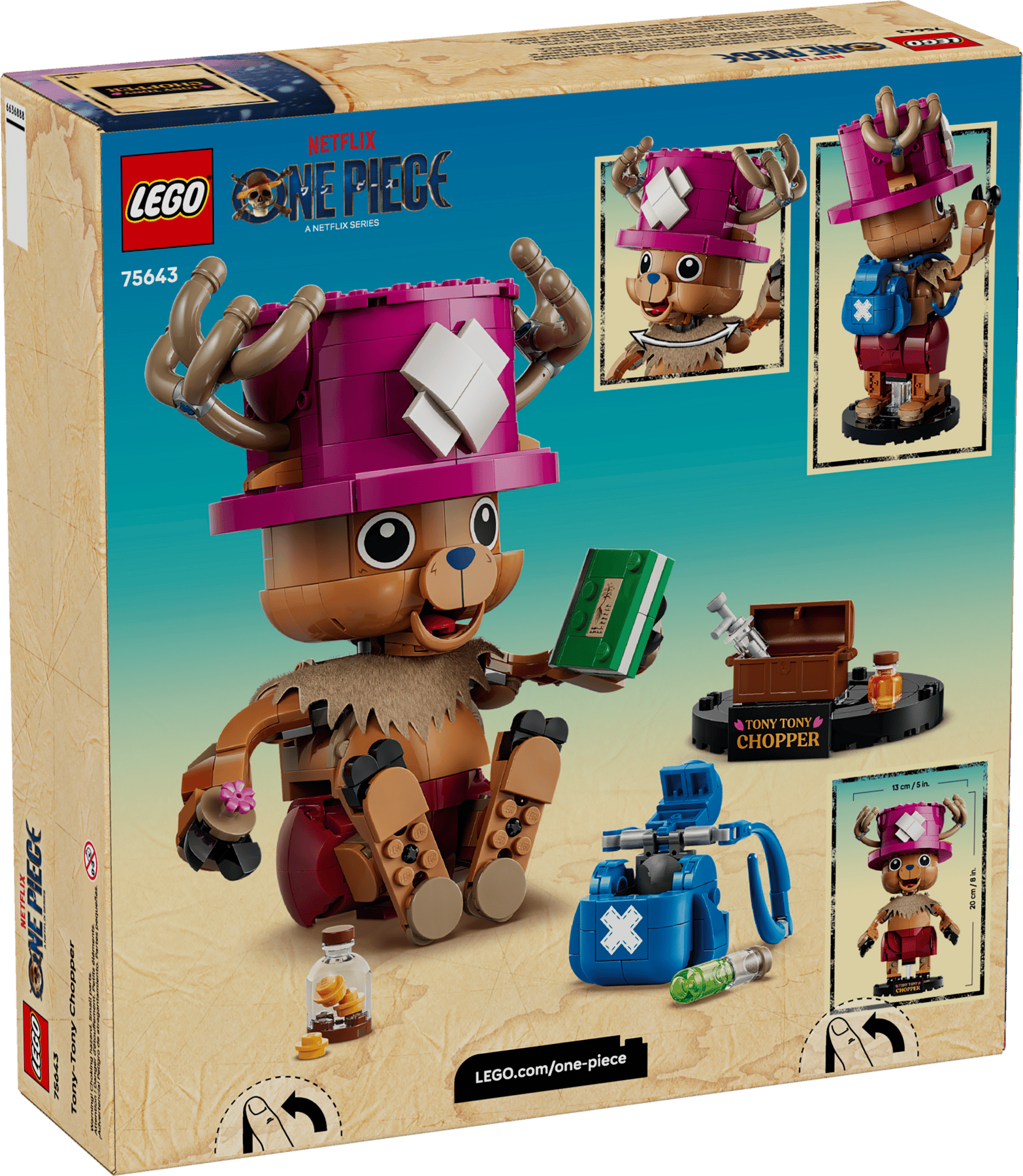 本次系列最大亮點在於完整重現真人版第二季的經典場景與角色,從喬巴登場、鼓磁王國篇,到羅格鎮與小花園篇,全都用樂高重新詮釋。而這次最受矚目的,無疑是「喬巴」的樂高化。