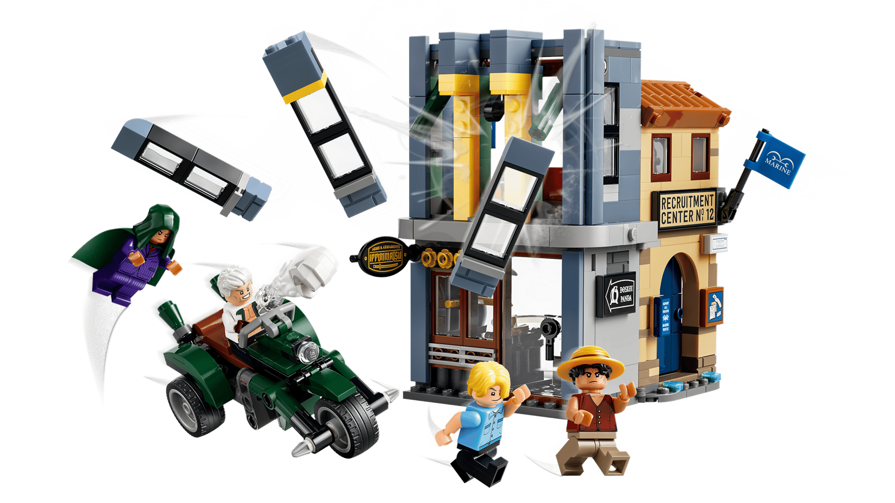 這是此次系列最複雜的套裝,由 1,705 片積木組成。玩家將能組出卡普中將的巨型海軍戰艦,內部結構同樣一點都不馬虎。套裝內含索隆、騙人布、娜美、卡普中將、克比、貝魯梅伯、達絲琪與羅賓。