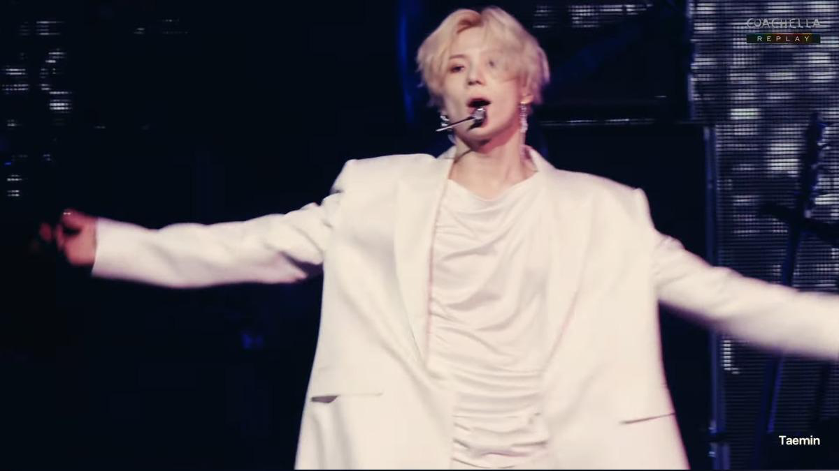 SHINee 成員泰民,創下歷史!成為首位登上 Coachella 主舞台的韓國男 Solo 藝人。整整 50 分鐘演出毫無冷場,從〈MOVE〉、〈Guilty〉到〈WANT〉,性感與力量兼具,甚至挑戰自彈自唱,舞台掌控力超級到位。雖然途中在演唱〈IDEA〉氣氛正嗨的時候發生音響故障的小插曲,他依然穩定完成演出。