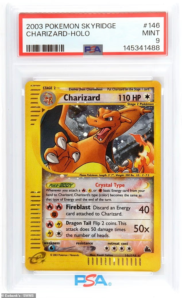 據了解這些卡牌當中,有三張幾乎全新的卡片,其中以「Skyridge 噴火龍全息卡」最為珍貴,估價最高可達 12,000 英鎊,另外兩張同系列卡片也分別有數千英鎊的身價。 Andrew Braund 也感謝自己當年拆封後有小心收好,因此保存狀態極佳,現在成為拍賣會上的焦點商品。