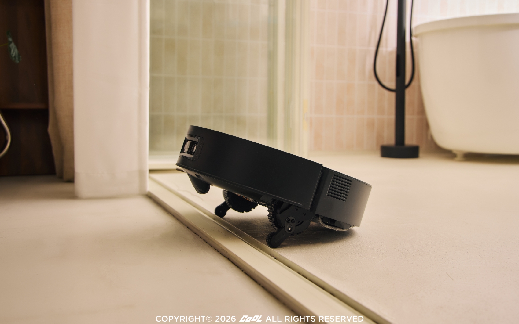 但它可不只能屈它還能伸,配合強悍的仿生機械足與底盤抬升功能,無論是 4.2cm 的單層門檻,還是 6cm 的連續障礙,它都能直接把自己「拔高」跨過。看著它俐落地穿梭在落地窗滑軌跟老屋門檻之間,真的會慶幸自己再也不用像搬家工一樣,每天回家還得幫機器人「收屍」了。