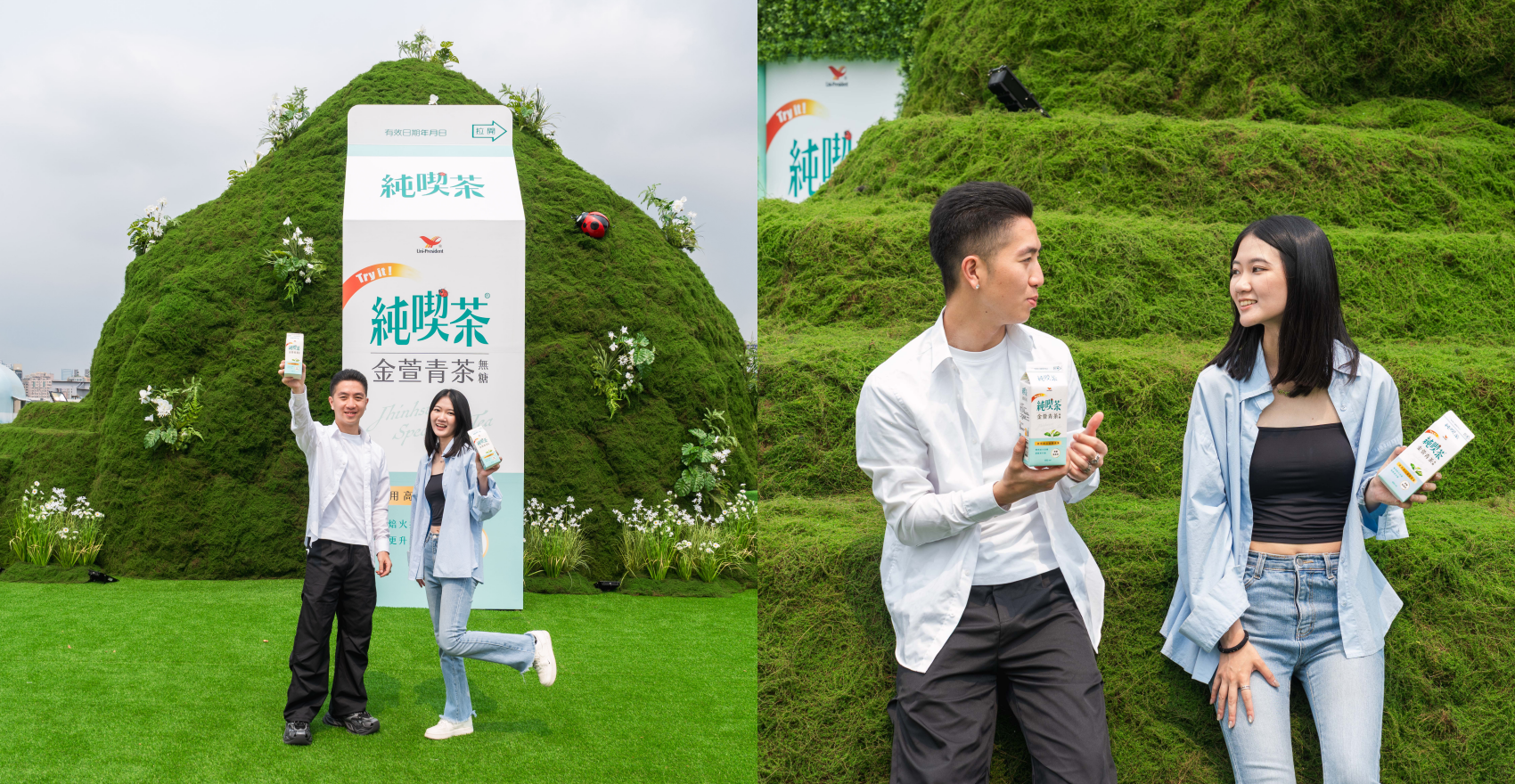 了讓這份高山風味不被流失,更透過專利焙火與冷研磨技術,將茶香完整鎖住,讓每一口都能呈現出層次分明且乾淨的茶感。除此之外,純喫茶更於大稻埕特意打造出「巨型高山」並結合五感體驗與VR科技的沉浸式場域,讓民眾在城市之中,不用上山,也能一口喝到來自高山的金萱青茶。活動現場最吸睛的是一座矗立於河岸的「城市高山裝置」,將高山意象融入城市景觀,吸引民眾駐足拍照打卡。走進體驗空間後,從視覺、聲音到氣味,層層堆疊出高山茶園氛圍,引領消費者一步步走進高山。