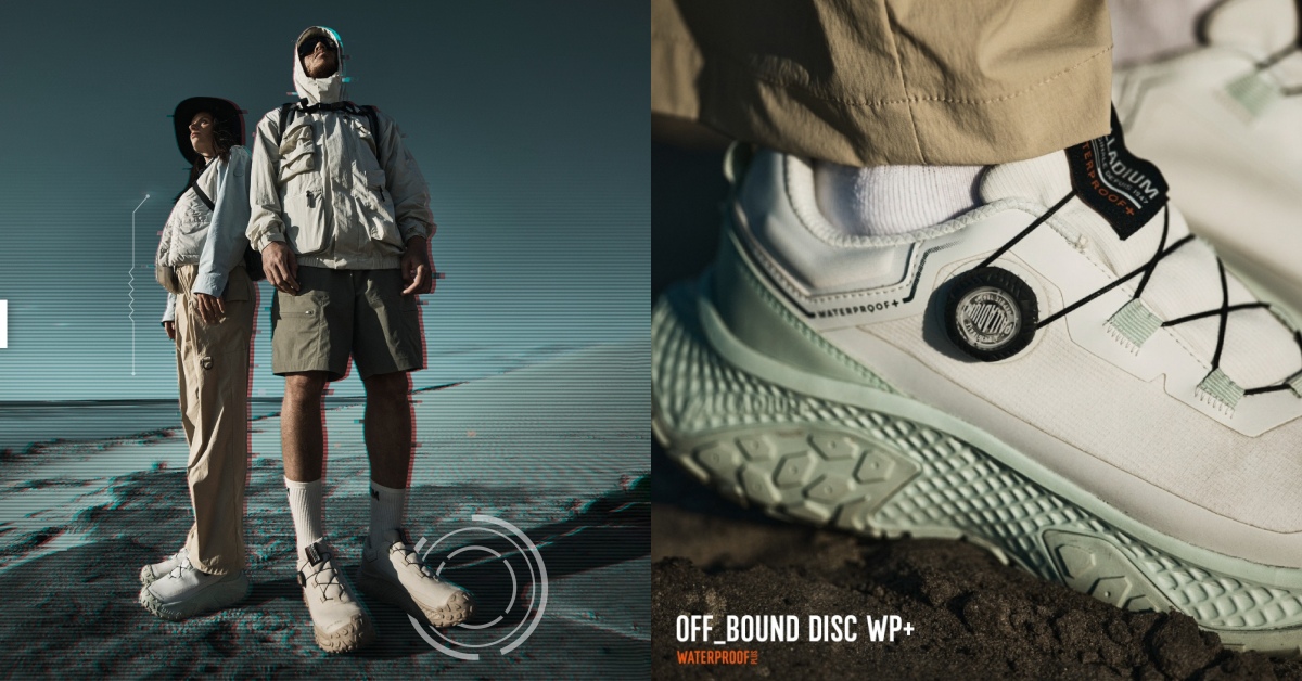 PALLADIUM[LAB]實驗計畫以「FUNCTION MAKE IT FASHION」為設計核心,展現品牌對未來機能與戶外科技的極致實踐,透過不斷進化、超越界限,推出首款旋鈕快速鞋帶系統的OFF_BOUND DISC WP+防水波浪鞋,宣示定義機能潮流的企圖,邀請城市探索者跨越界限,讓機能成為驅動風格的關鍵動能,本次形象照以無垠荒野與沙漠邊界為場景,藉由遼闊地景與鞋款俐落線條的對比,勾勒出極具張力的URBAN OUTDOOR探險視覺語彙,科技風格結合大地色調,在廣袤無垠的沙漠中,完美詮釋了無畏邊界、主宰場域的機能美學。