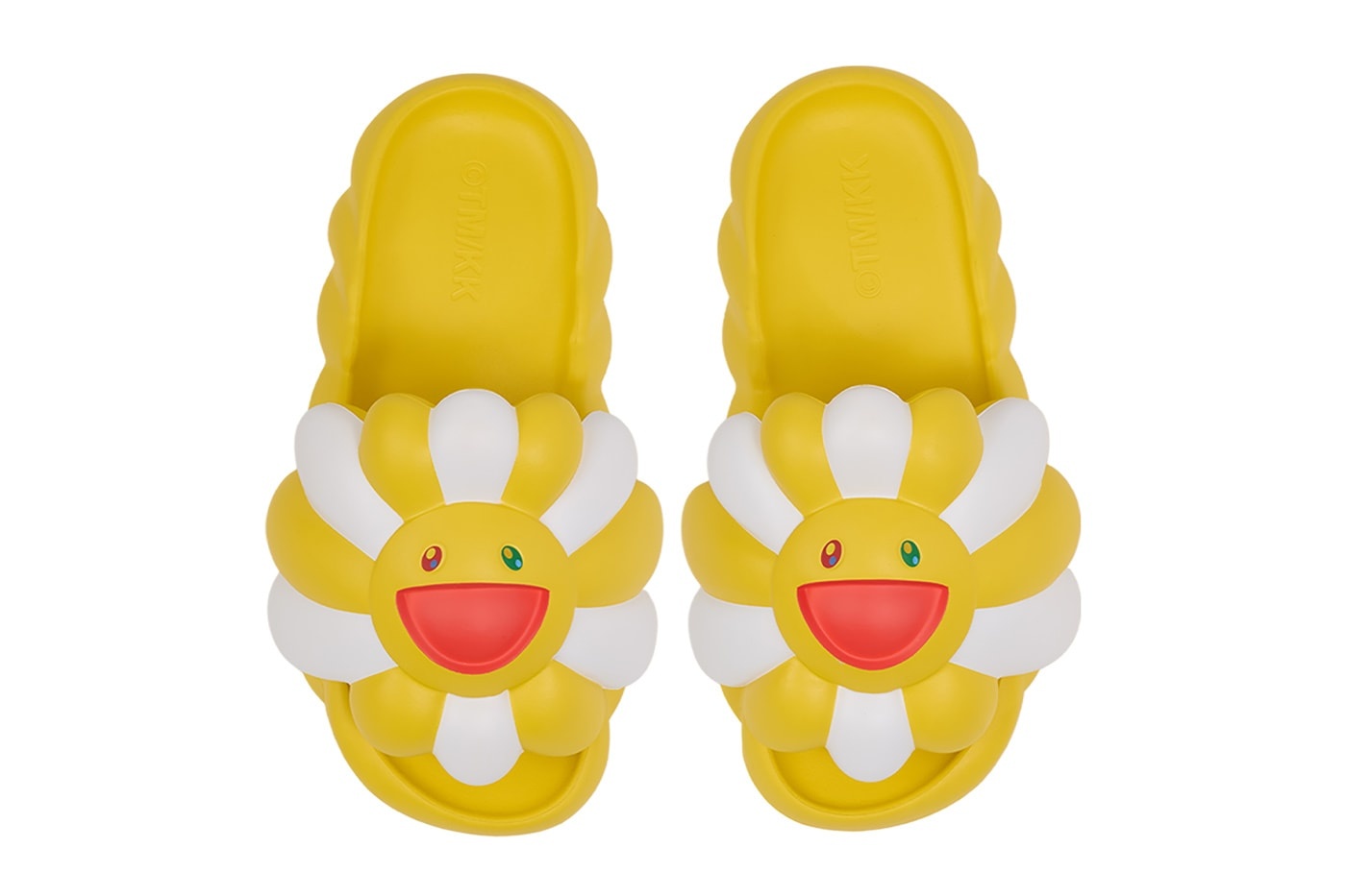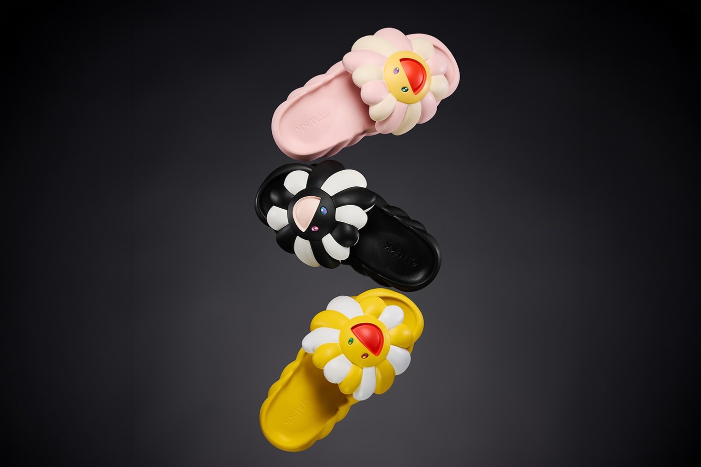 此次釋出的全新配色不同於先回推出的單色系列鞋款,分別為粉色、黑色、黃色。透過鮮豔的色彩對比營造出可愛風格。至於造型概念則汲取 Takashi Murakami 自身最具標誌性的太陽花形象用於鞋款固定處,視覺效果直接拉滿;而足部的凹面設計不僅延續其花瓣效果,技術方面亦升級為 EVA 泡棉鞋墊強化舒適、緩震以及抓地力表現,讓鞋款在視覺與實用之間取得巧妙的平衡。