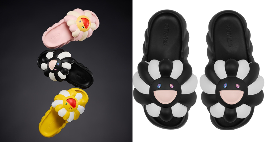 此次釋出的全新配色不同於先回推出的單色系列鞋款,分別為粉色、黑色、黃色。透過鮮豔的色彩對比營造出可愛風格。至於造型概念則汲取 Takashi Murakami 自身最具標誌性的太陽花形象用於鞋款固定處,視覺效果直接拉滿;而足部的凹面設計不僅延續其花瓣效果,技術方面亦升級為 EVA 泡棉鞋墊強化舒適、緩震以及抓地力表現,讓鞋款在視覺與實用之間取得巧妙的平衡。