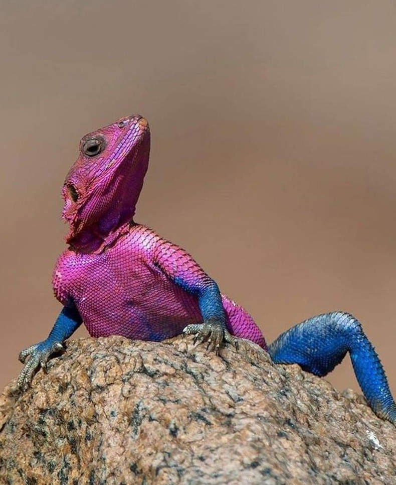 牠們之所以會引起網友討論是因為「顏色太不科學」。「姆萬扎平頭岩鬣蜥」雄性在繁殖季時,頭部會變成亮紅或紫紅色,身體則呈現深藍甚至靛藍色,在岩石與沙地背景下形成極強對比,遠遠看就像一個「走錯片場的漫威英雄」。