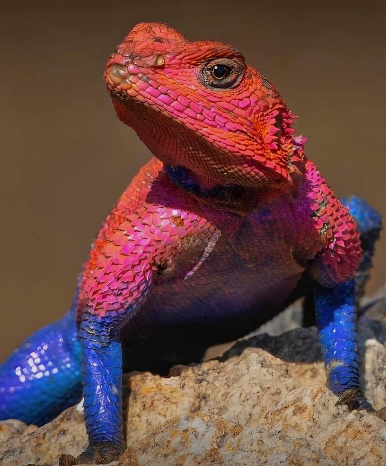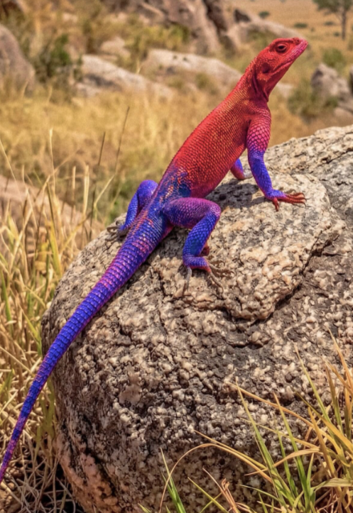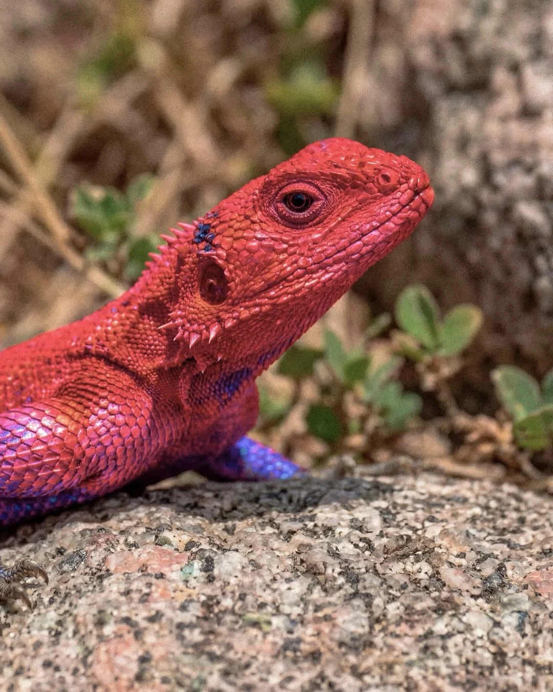 也有外媒形容牠像是「自帶戲劇效果的生物」,因為牠的體色還會隨溫度與狀態變化:越健康、越有自信,顏色就越鮮豔。在一片非洲岩石草原上,一隻紅藍分明的蜥蜴站在高處曬太陽,畫面確實很難不讓人多看兩眼。