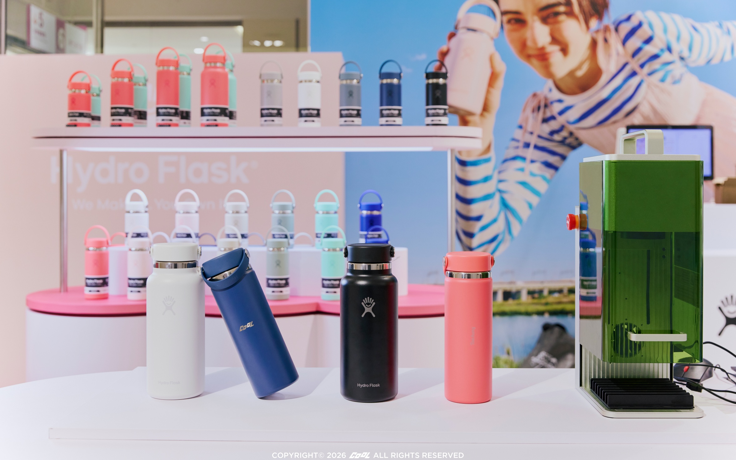 Hydro Flask活動快閃期間推出獨家活動,凡購買指定瓶款並於現場打卡標記@hydroflask.tw或攜帶Hydro Flask舊瓶+ISPO會員點數100點, 即可兌換雷射雕刻一次!專屬客製化,創造你獨一無二的時尚水瓶!