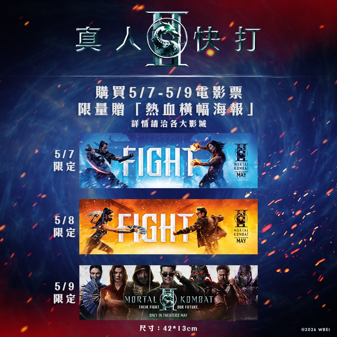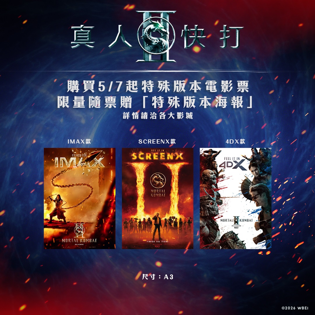 《真人快打 II》以 IMAX 特製拍攝,將於 5 月 7 日(週四)2D · IMAX · 4DX · Atmos · Dolby Cinema · ScreenX 同步上映同步上映。