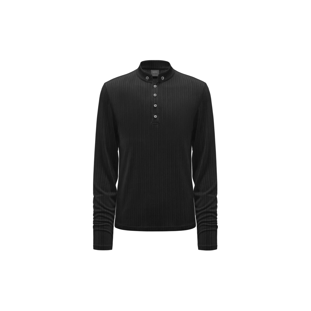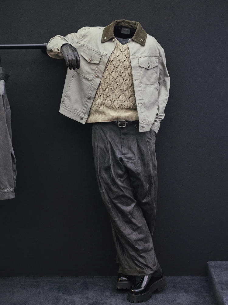 細節方面,本系列以全金屬紐扣作為重要元素,貫穿整體設計,不僅提升視覺一致性,也強化服裝的結構感與重量感。輪廓設定介於正式與日常之間,透過精準剪裁與統一細節語言,兼顧實穿性與造型完整度,展現品牌一貫的機能與美學平衡。