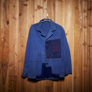 法式工裝夾克,出現於 20 世紀初期工業革命的歐洲,對於古著市場普遍以美式服裝掛帥,Franch Work Jacket 可謂是歐洲工裝最具代表性的傑作。整體以耐磨的斜紋布製作,佐以當時時空環境最易取得也最耐髒汙的藍色染料,同時不同於牛仔布的藍染與本白紗線混紡,整件外套的裡外皆為統一的藍色調子,單排扣、三貼袋,構築出了工裝世界優雅的一章。