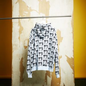 佈滿全身的肖像印花以黑白色調呈現,高反差帶來的強烈印象,以基本白色為底的配色,春季穿搭也毫無問題。BOTT連帽衫(LAB select shop)。