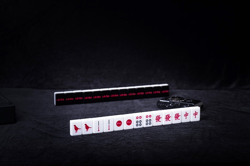 「2021 金秋限定麻將禮盒」大量使用了徠卡相機經典的品牌元素,從優雅的黑色消光手提皮箱上低調壓印的 Leica Logo 標識、到 146 顆麻將牌中一條牌面改用徠卡望遠鏡的小鳥標誌模樣、筒牌牌面改成相機光圈標示、花牌和白板則分別採用了兩種取景框等等,細節設計富含對攝影藝術的精緻巧思。