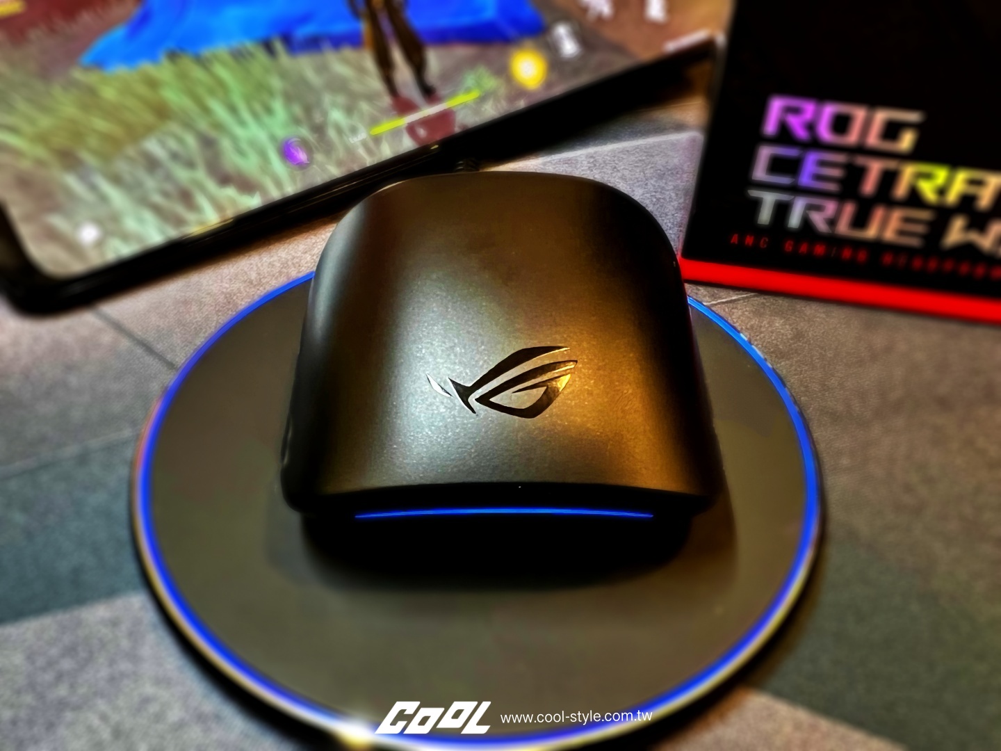 ROG Cetra True Wireless 耳機充電盒可透過相容的無線充電版進行充電
