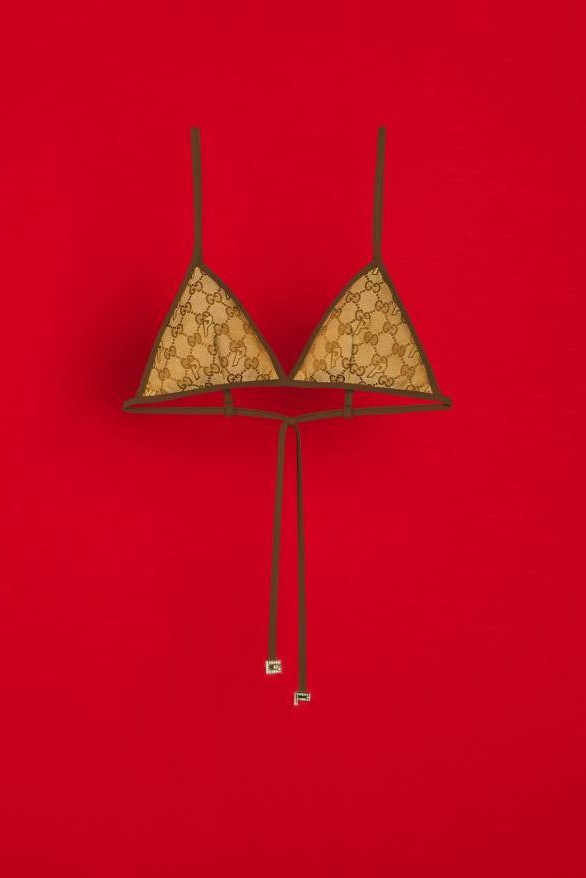 另外配件方面,除雙方經典 Logo 注入包款或是帽款單品當中,GUCCI 以往經典的筒狀老花旅行袋、隨身肩包,也採用 Tri-Ferg 三角形進行重新演繹,絕對是當季必收的標誌單品之一;不僅如此,雙方甚至還找來義大利知名摩托車商 MOTO GUZZI,打造全球限量 50 台且配置迷彩老花皮箱的 V7 車款,是為令人驚喜的三方聯名彩蛋。
