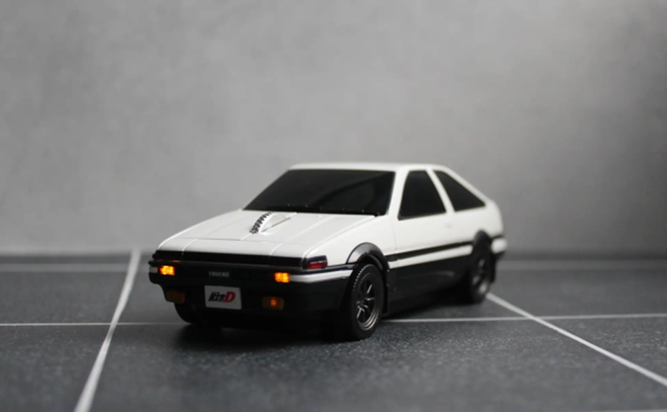 由 Toyota 與講談社雙方授權的《頭文字D》藤原拓海 AE86 造型無線滑鼠,完美還原了這輛被稱作秋名山車王的細節,車身上印有藤原豆腐店(自家用)的 AE86,引擎蓋化身成滑鼠左右鍵,實際使用時,車頭、車尾燈還會發亮,同時還隨機附贈重野秀一繪製的原作插圖滑鼠墊。這麼有型的無線滑鼠售價目前已開放預購,售價為 6600 日圓。