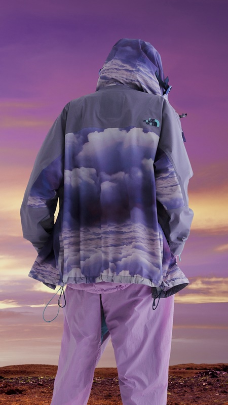 著自然巧色,於山間曠野尋找戶外風格。The North Face X CLOT聯名系列將以更為感性的色彩美學主義,賦予戶外裝備更多靈感穿搭。將山巒雲海美景幻化為獨特的印花,取變化無窮的自然光景,調配出日出紫、夕暮藍、極光青、山石棕等絕妙色彩,交織成為本次聯名系列獨一無二的美學概念。The North Face X CLOT聯名系列衝鋒衣,採用DRYVENT防水科技,鋪印壯麗雲海景觀,衣袖及衣身兩側採用撞色設計,輕鬆塑造戶外時尚風格。新品防水斗篷下擺採用暗扣調節,斗篷上鋪滿多彩雲朵演繹戶外美學。山嵐色系抓絨上衣,配合可拆卸風帽,以中式紐扣結作裝飾。配套抓絨長褲,保暖又舒適。防潑水防風外套,選用半透明材質,同樣搭配可拆卸風帽以及斜開衣襟設計,可搭配抓絨上衣疊穿,或是配套半透明材質休閒長褲與抓絨長褲疊搭穿著。