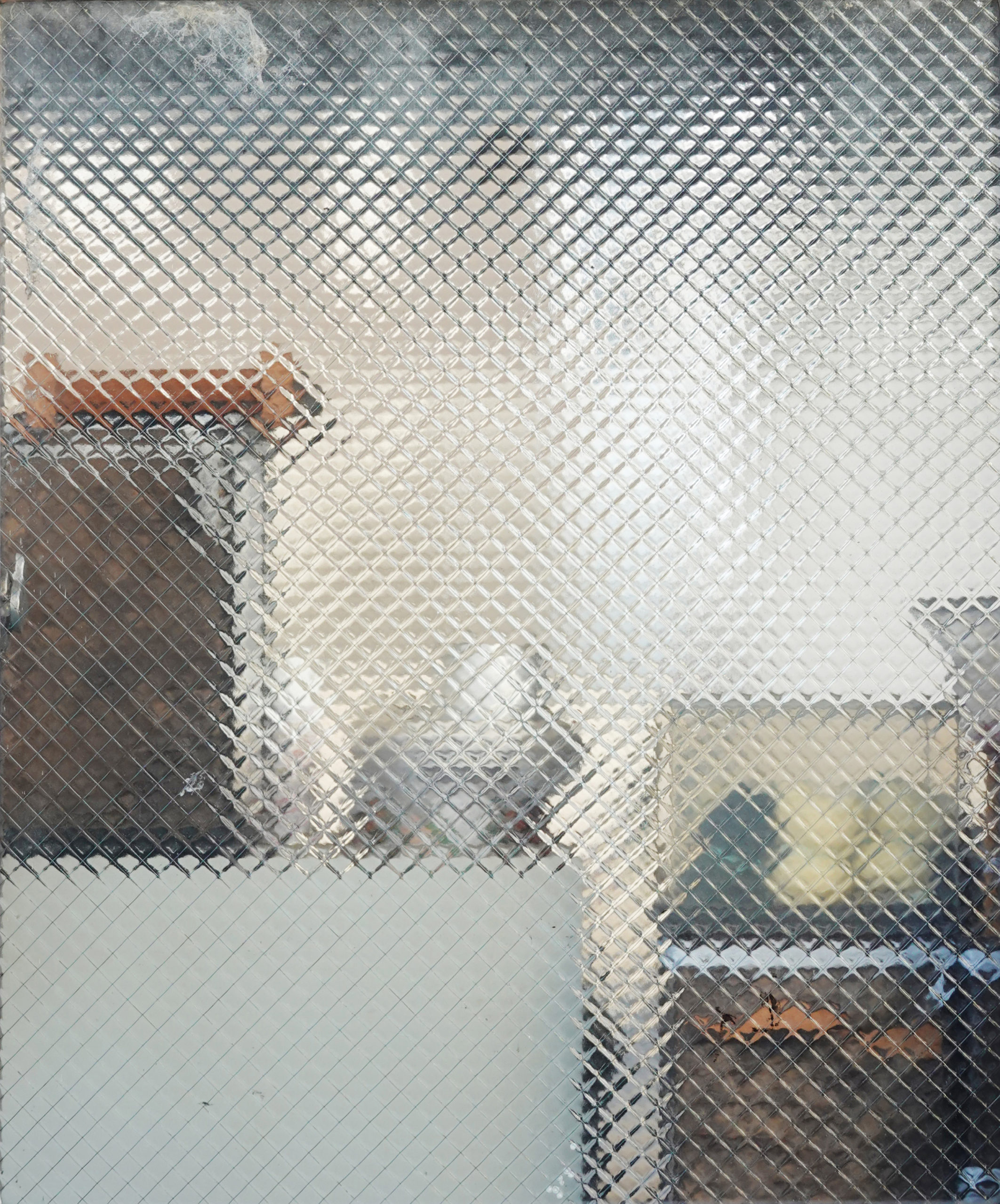 奧山發現面向街道的窗戶大多采用毛玻璃或霧面玻璃這類非透明的材質,透過這些玻璃能模糊地看見屋內各種日用品的模樣。廚房或浴室的洗手台邊、模型、花朵、掛曬的衣物、雨傘、神明桌、腳踏車…… 沿著窗框裁切後的照片是一張張抽象的形狀與幾何模樣,屋外的影子與玻璃窗上的反射巧妙融合,整幅畫面讓人開始想像居住者的存在。這是一張又一張的窗戶照片化作東京人群肖像的瞬間。當我們將相機的觀景窗對著另一扇窗戶時,兩窗之間的差距變作螢幕,在一張平面照片中創造出新的景深和畫面。