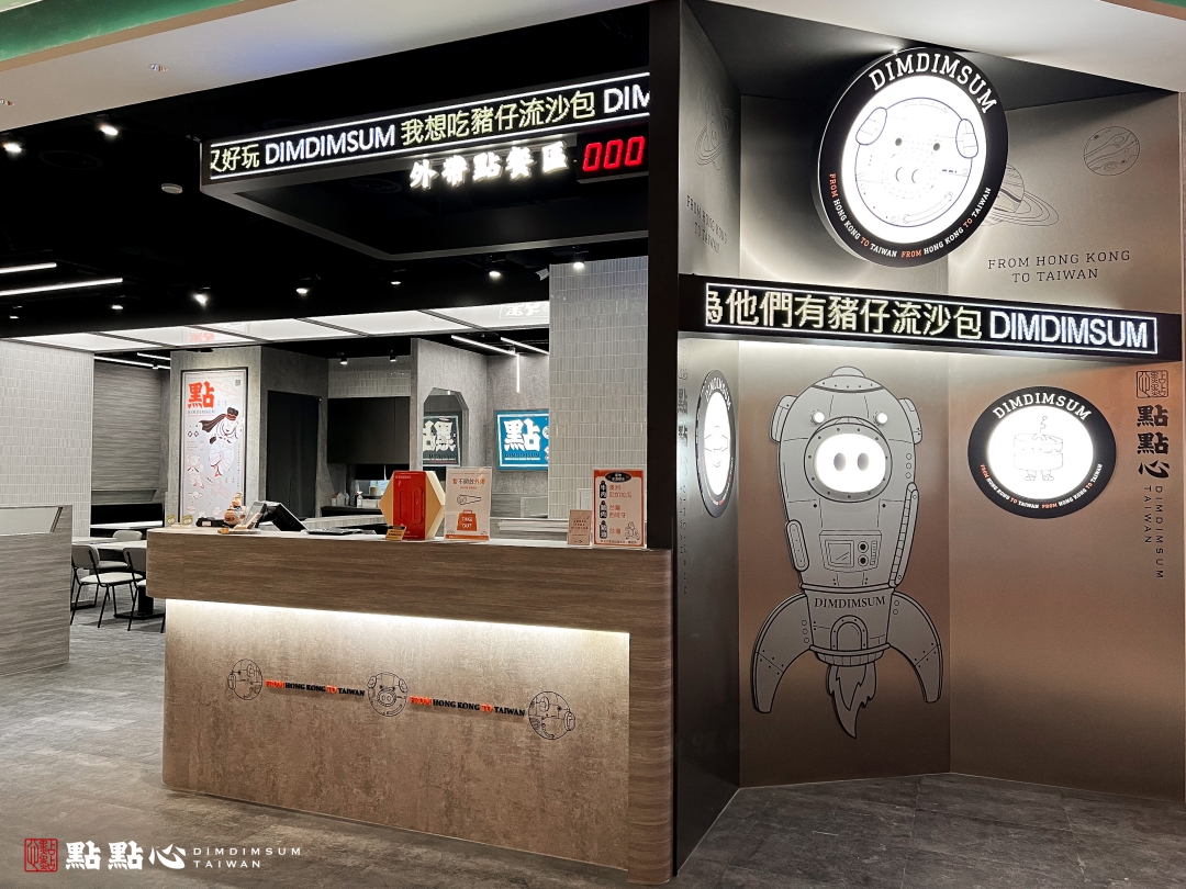 以一顆會流鼻涕的「豬仔流沙包」颳起全台港點熱潮的點點心,正式插旗點點心新店裕隆城店。這不僅是品牌第 15 號店,更是點點心第一家太空科技感的全新店型。用銀河灰 x 宇宙太空藍特調出品牌新配色,更有讓人眼睛為之一亮的 LED 光條、文字跑馬燈及牆面燈箱,邀請大家一起來遨遊港點宇宙。