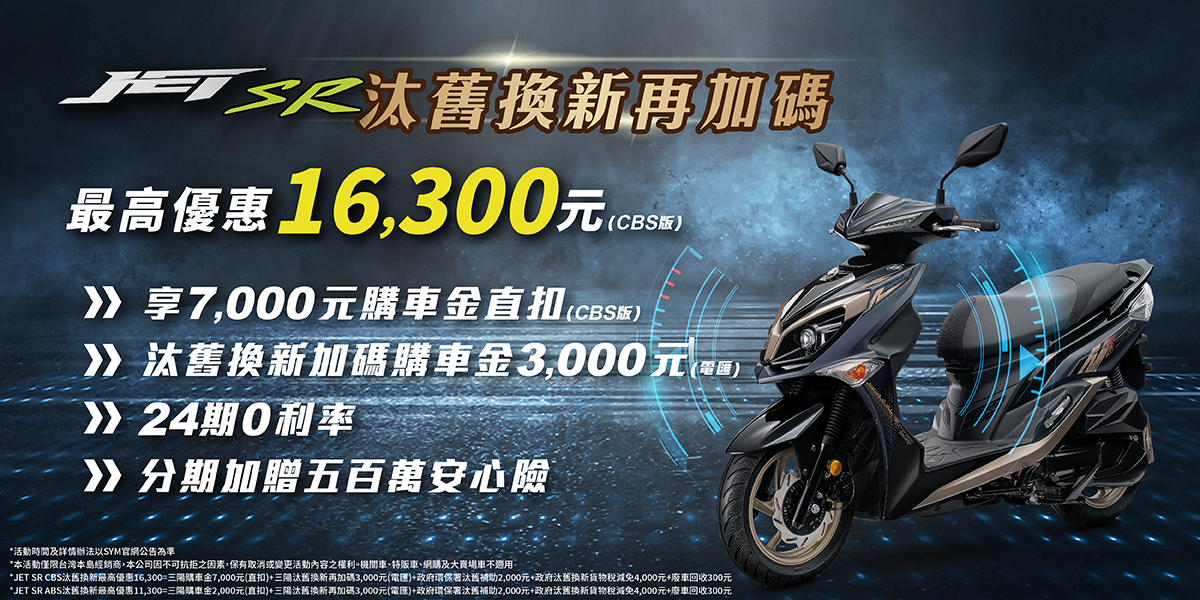 年終政府汰舊補助2,000元即將截止收件,SYM為回饋消費者,全車系汰舊再加碼3,000元(電匯),迪爵汰舊最高補助達23,800元。聰明消費、輕鬆入手,歲末汰舊迎新,把握最後補助機會有感省荷包。